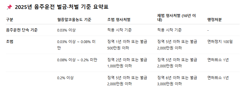 2025년 개정된 음주운전벌금처벌기준은 운전자들에게 법적 경각심을 주는 동시에, 음주운전 근절을 위한 강력한 사회적 메시지를 담고 있다고 할 수 있습니다.