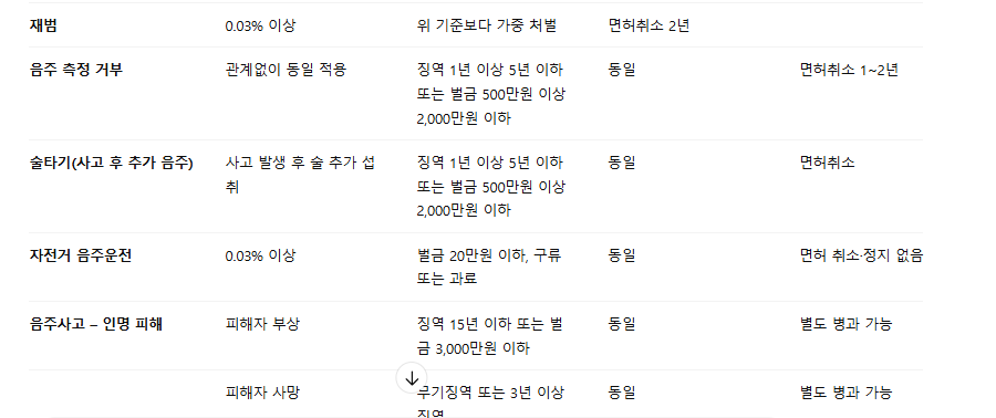 음주운전의 처벌은 기본적으로 혈중알코올농도 수치에 따라 단계적으로 구분됩니다.