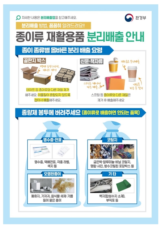 종이류 분리배출의 핵심은 재질별 구분입니다.