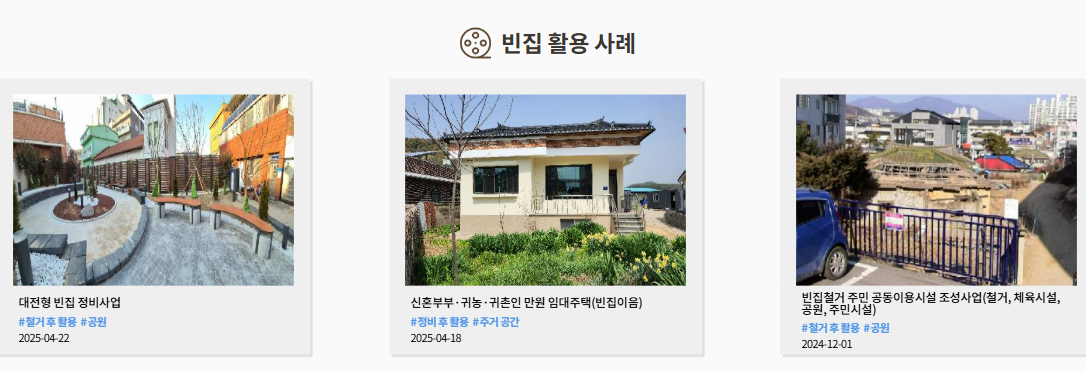실제 사례로는 2025년 4월 신혼부부·귀농·귀촌인을 위한 만원 임대주택(빈집이음) 조성, 대전형 빈집 정비사업을 통한 주민 공원 조성 등 다양한 정비 및 활용 시도가 포함되어 있습니다. 이러한 사례는 지자체뿐 아니라 지역 주민이나 투자자, 사회적 기업 등에게 실질적인 벤치마크가 되며, 빈집을 단순 철거가 아닌 가치 있는 자원으로 전환하는 가능성을 제공합니다.