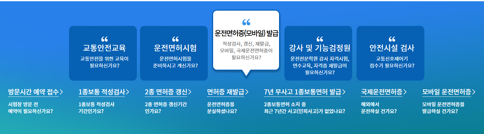 1종 보통이나 대형 면허 소지자는 적성검사를 받아야 하며, 이 역시 온라인으로 신청이 가능합니다.