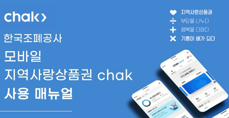 지역사랑상품권을 스마트폰에서 간편하게 사용하려면 지역상품권 chak 앱을 설치해야 합니다.